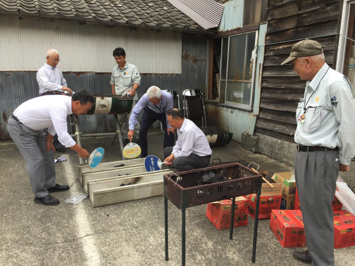 ジョッキの会は終業後の夕方よりスタートしますが、終業のベルが鳴る少し前から、既に飲みたくて待ちきれないベテランスタッフたちが率先垂範して火起こしを始めていました。これはある意味弊社の企業文化なのかもしれません(笑)
