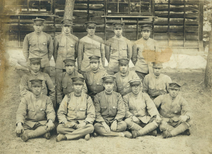 中には、戦時中のこのような写真も。創業後に勃発した第二次世界大戦時に多くの仲間たちが陸軍兵として招集されました。ちなみに、創業者代表の猪又 匤(ただし)は、戦地で相手側の銃弾を両膝に受けて負傷し帰還しています。もしも彼が戦死していたら、弊社の歴史は大きく塗り替わっていたかもしれません。