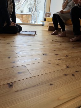 フローリングに座ってもらいました。