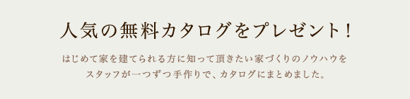 はじめて家を建てられる方に、知っていただきたい家づくりのノウハウをスタッフが一つずつ手作りで、カタログにまとめました。